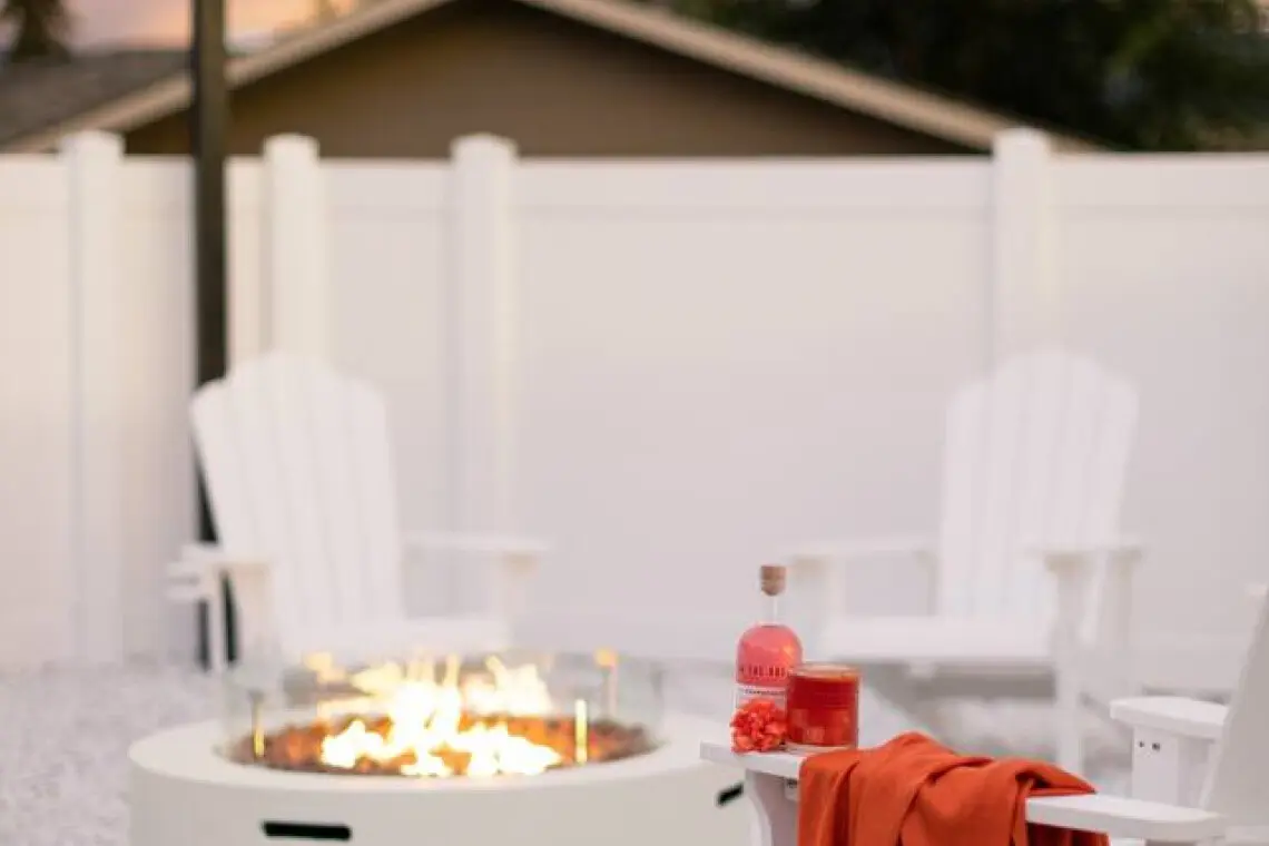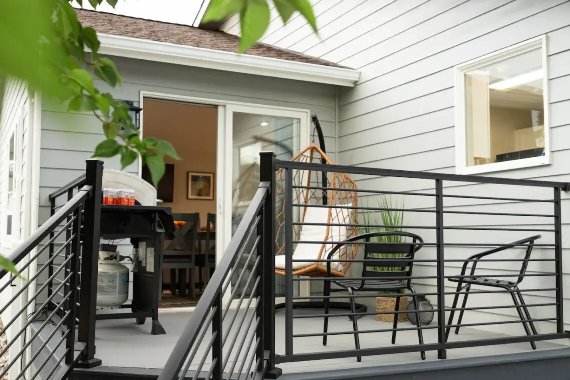 OUTDOOR LIVING: Private backyard, hot tub, trex deck, gas grill, fire pit, outdoor dining